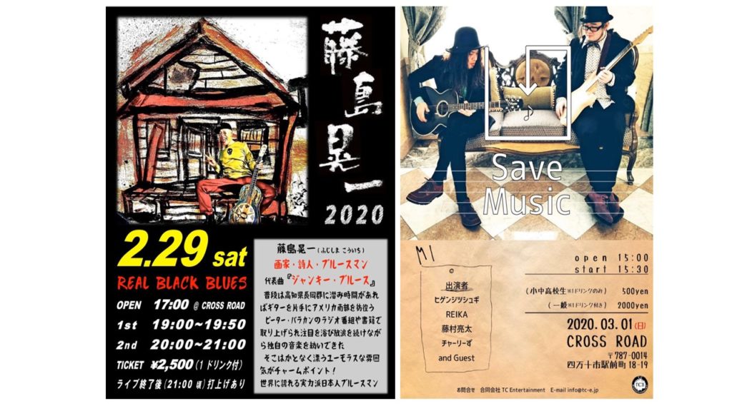 藤島晃一 LIVE 2月29日(土) 開場 17:00 1st 19:00~19:50 2nd 20:00~21:00 チケット 2,500円(1ドリンク付) ライブ終