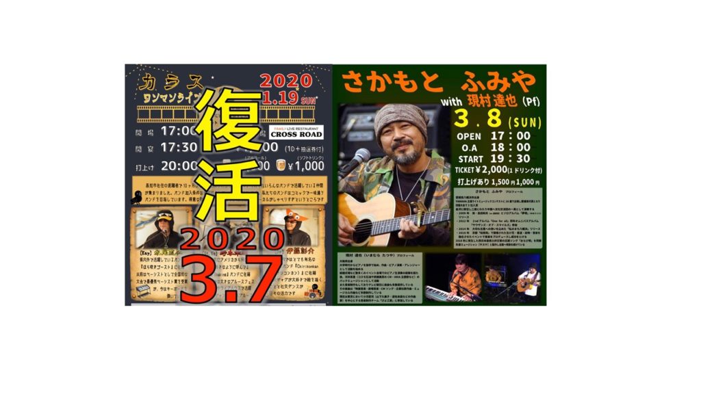 新型コロナウイルスの感染等の影響でイベントの中止が相次いで決定されておりますが、CROSS ROADでは検討の末現在予定しておりますライブは実施させていただきます。つきましては、新型コロナウイルス等の感染予防・拡散対策と